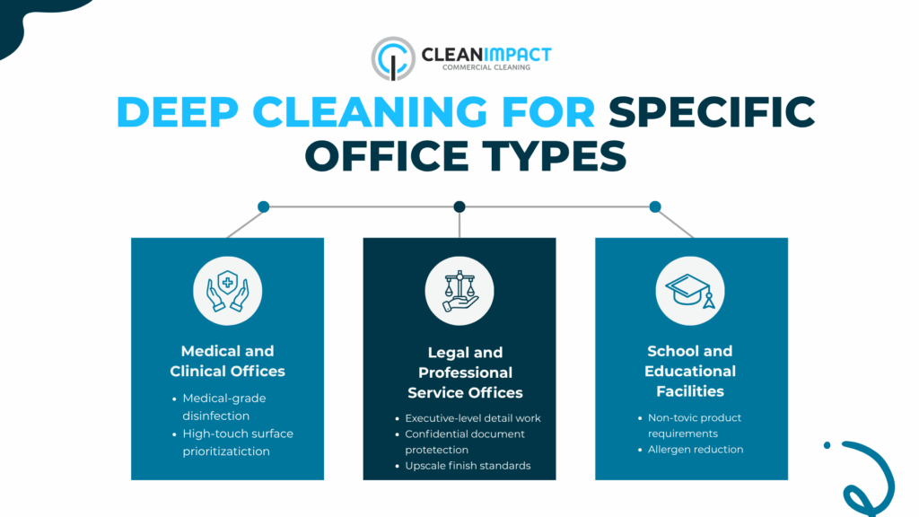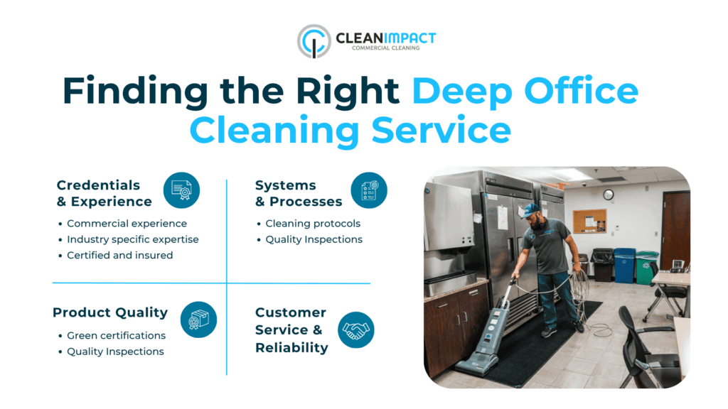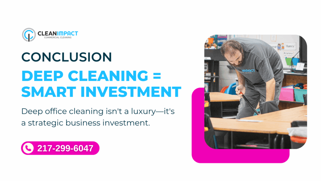 Your Springfield office deserves more than surface-level cleaning. It deserves the thorough, systematic approach that professional deep office cleaning services provide. Whether you manage a small professional office, a busy medical clinic, or a large corporate space, Clean Impact LLC has the expertise, equipment, and commitment to deliver results that matter.