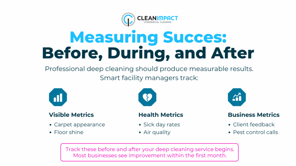 Track these before and after your deep cleaning service begins. Most businesses see improvement within the first month.