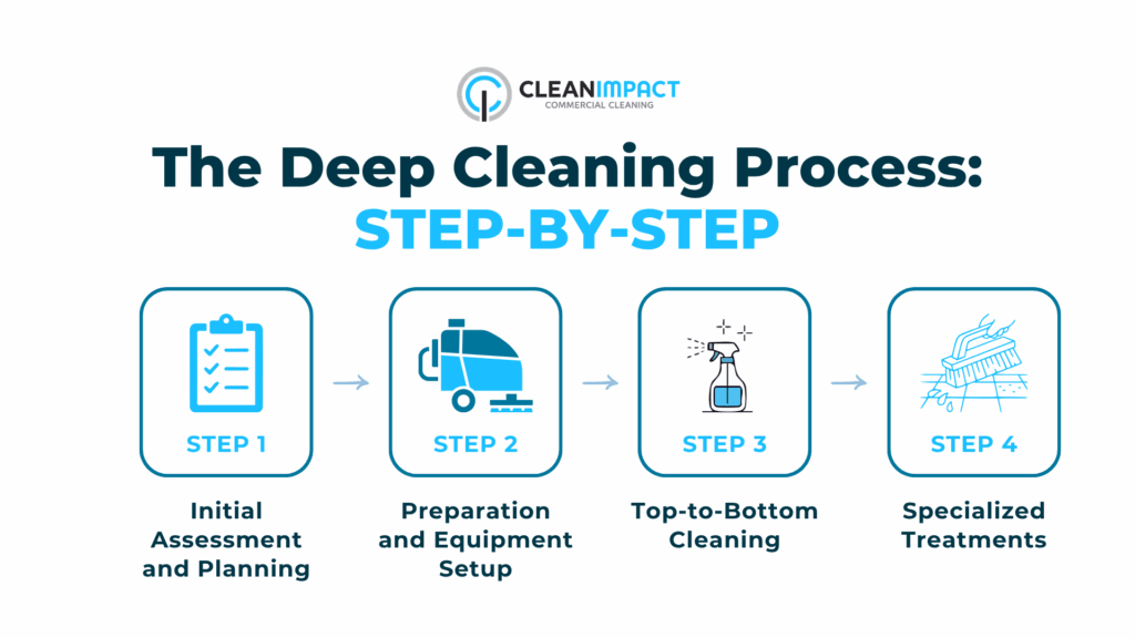 Professional deep office cleaning isn’t random. It follows a systematic protocol designed to maximize efficiency and results.