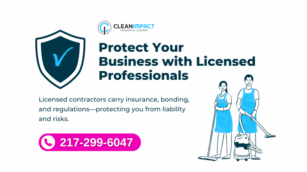 That story repeats constantly because hiring unlicensed cleaners feels cheaper until something goes wrong. Licensed commercial cleaners Springfield IL operate under regulatory oversight, carry insurance, maintain bonding, and background check their staff. That cost structure protects you. Let’s discuss why licensing isn’t an unnecessary expense—it’s critical risk management.
